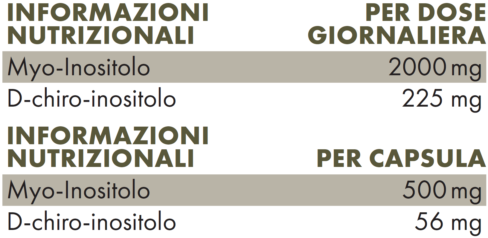 Myo-Inositolo, guscio della capsula: idrossipropilmetilcellulosa, D-chiro inositolo