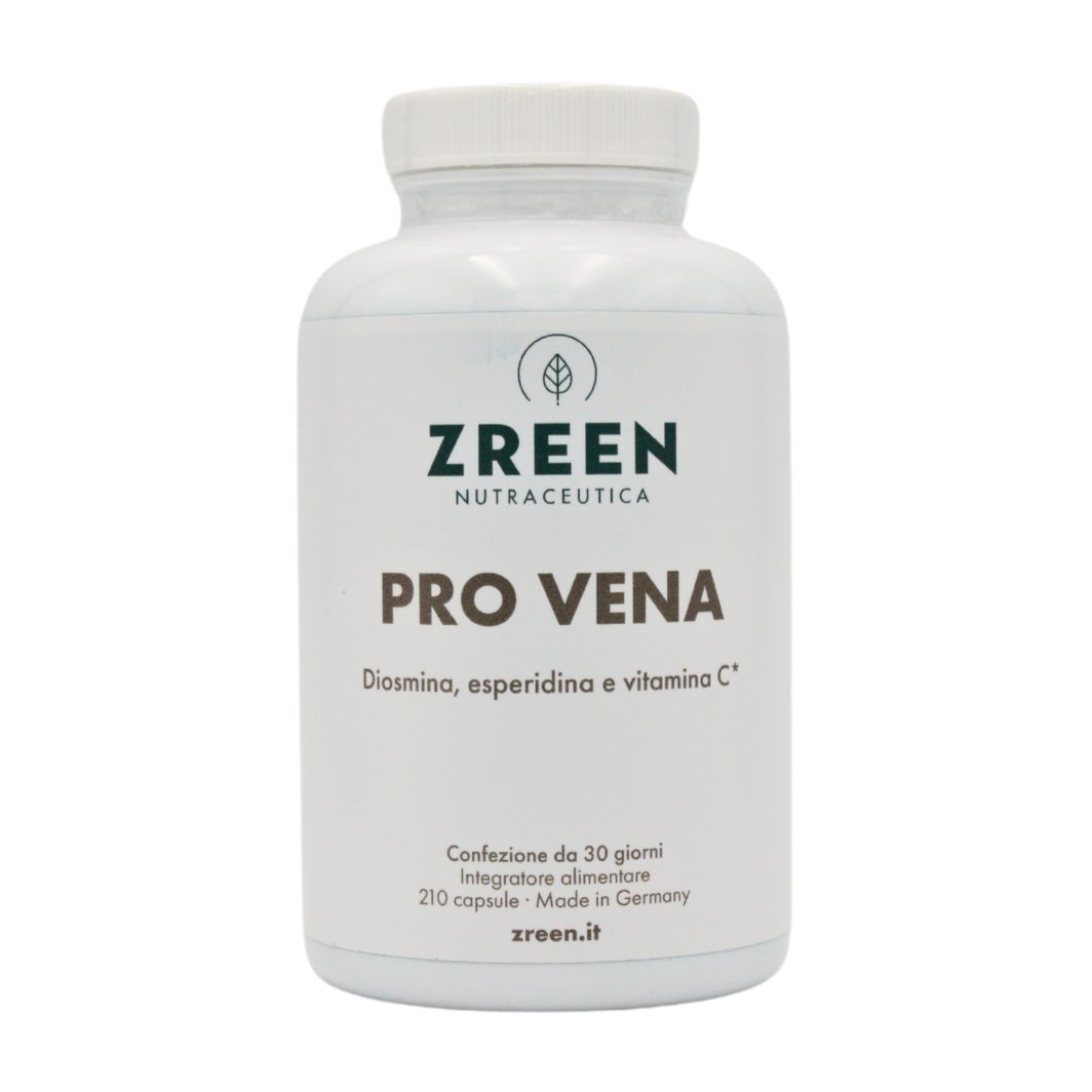 ProVena di ZREEN – Con preziosi estratti vegetali come semi d’uva, foglie di vite rossa e Sophora Japonica (contiene rutina), integrati da sostanze comprovate come diosmina ed esperidina. Contiene inoltre vitamina C, vitamina E e rame. 210 capsule vegane per un trattamento di 30 giorni.